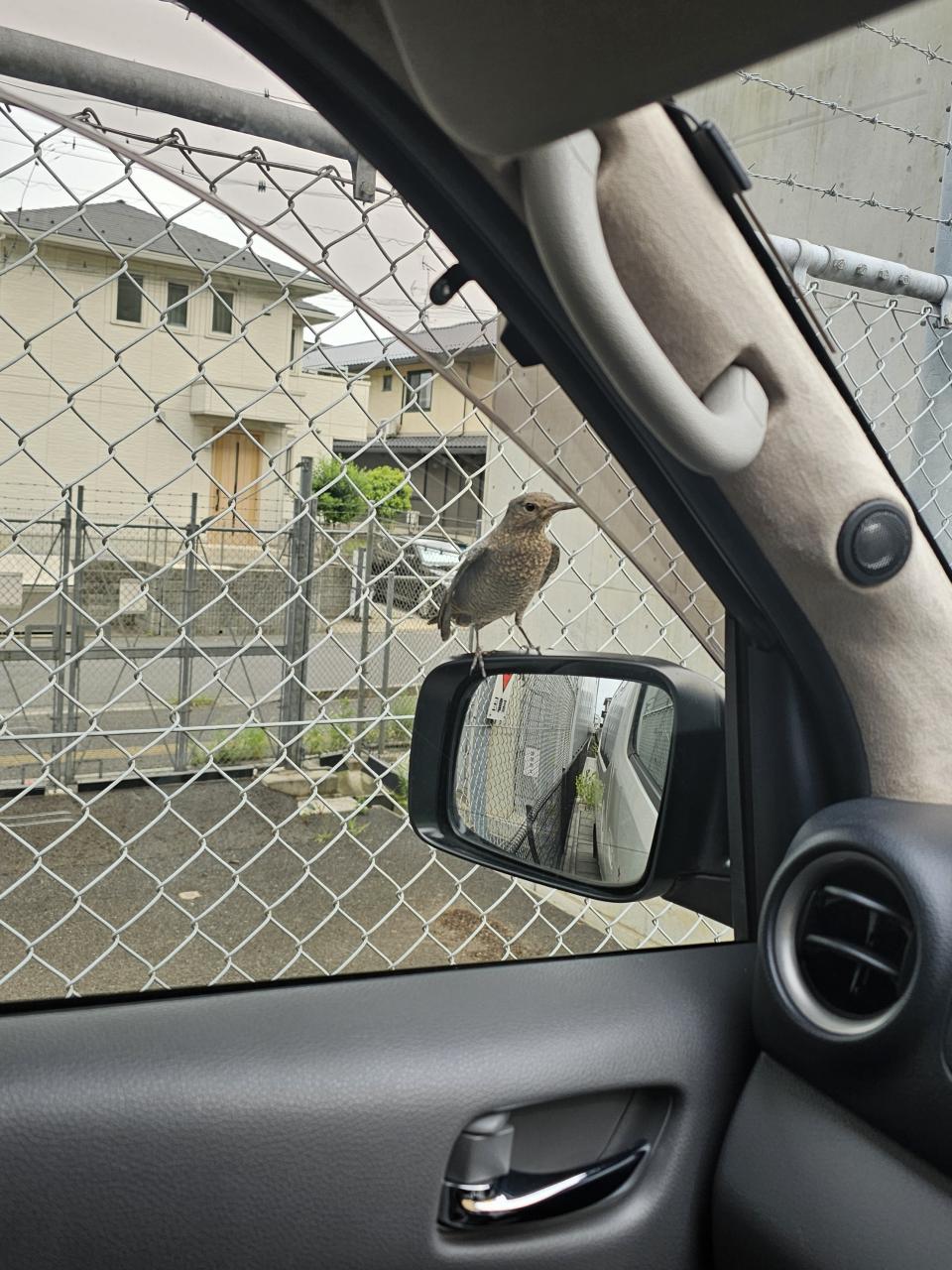 休憩中、車のミラーに鳥さん止まりました❗